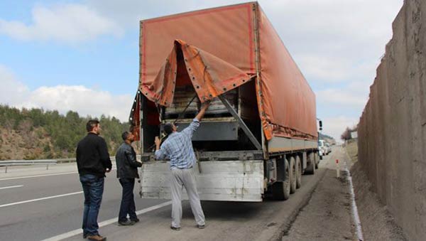 TEM Otoyolu kenarına çekilen TIR’ın dorsesindeki iki kamyonetin çalıntı olduğunun belirlemesinin ardından araç Asayiş Şube Müdürlüğü’ne çekildi.