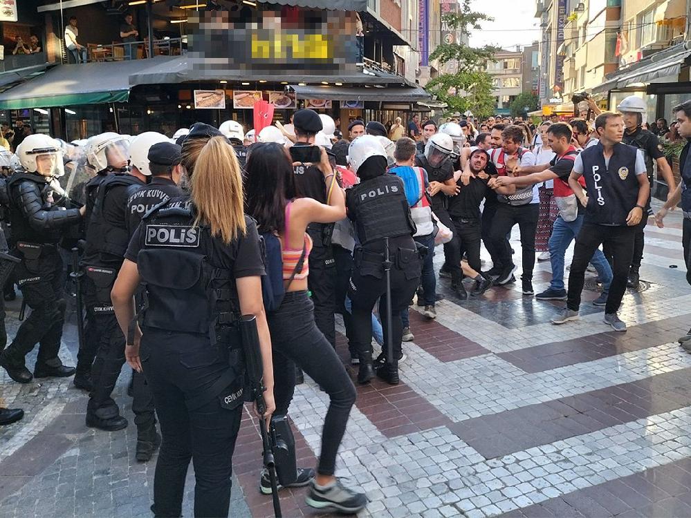 İzmir’in Alsancak ilçesinde düzenlenen eyleme polis tarafından tazyikli suyla müdahale edildi. Çok sayıda kişi gözaltına alındı.