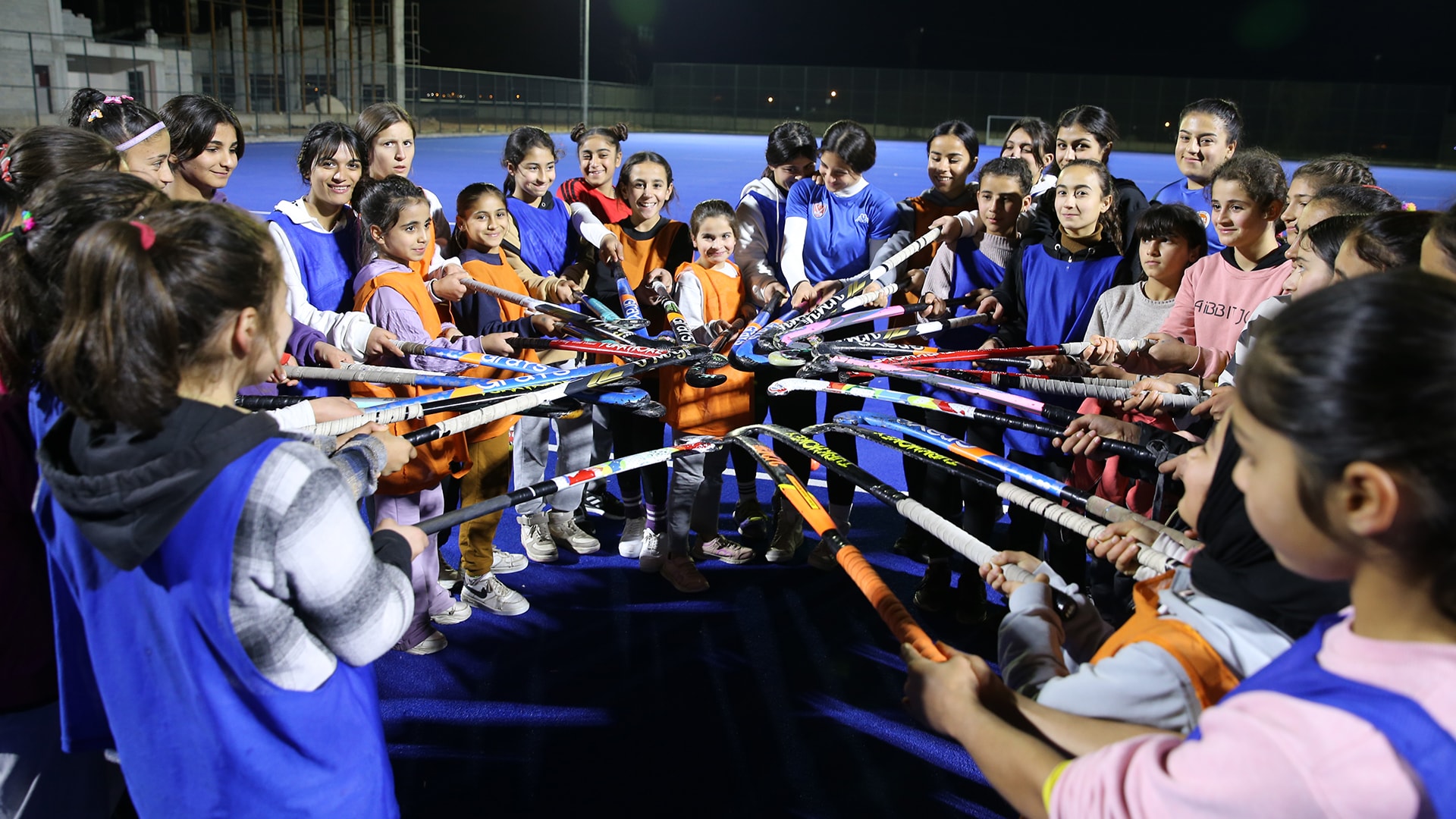 Öğrencilerin aileleriyle görüşerek onları ikna eden antrenörler, kurdukları kız hokey takımın başarısıyla ilçedeki gençlerin odak noktası haline geldi.