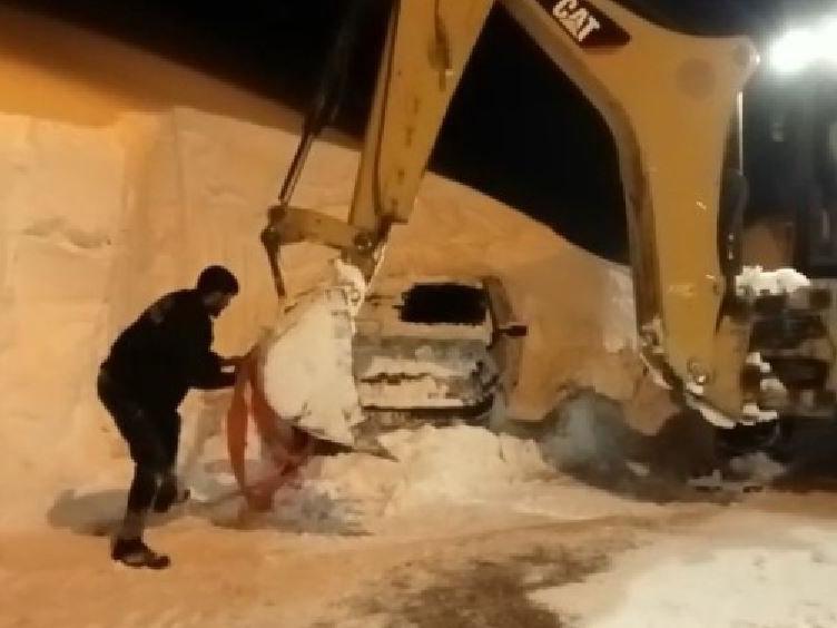 Malatya'da yoğun kardan dolayı yolda kalan sürücünün terk ettiği aracı 5 metre karın altından çıktı.