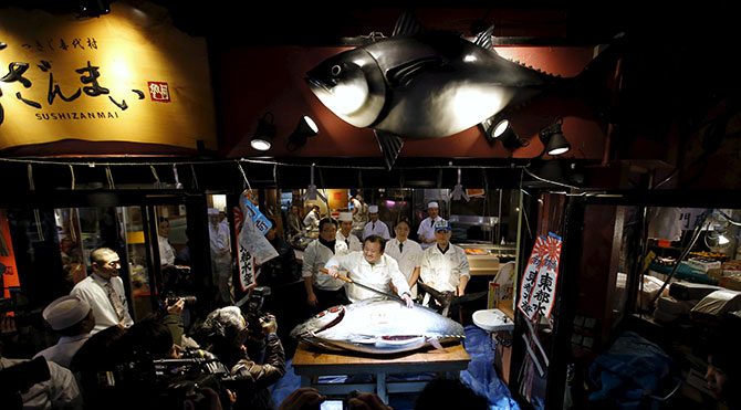 Açık artırma, Tsukiji balık pazarında gerçekleşen geçen yılki en yüksek açık arttırma fiyatının üç katı olsa da 2013 yılında yapılmış olan 1,3 milyon dolarlık rekor satış fiyatının çok altında kaldı.