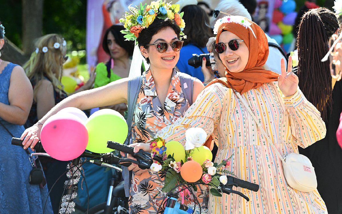 Haberler - Gündem Abone Ol Süslü kadınlar bisiklete bindi, yollar rengarenk oldu Türkiye'de bugün bisikletleriyle sokağa inen 'süslü kadınlar' bir birinden güzel görüntülerin ortaya çıkmasına neden oldu. Haber Merkezi 17 Eylül 2023 Güncellenme: 17 Eylül 2023 Facebook ile paylaş Messenger ile gönder E-posta ile gönder Yazıları büyüt Yazıları küçült Standart boyut Otomobilsiz Kentler Günü dolayısıyla bu yıl 11'incisi gerçekleştirilen Süslü Kadınlar Bisiklet Turunda, bisikletlerini çiçek ve balonlarla süsleyen kadınlar kent turu attı, ortaya renkli görüntüler çıktı.İşte o görüntülerden bazıları;