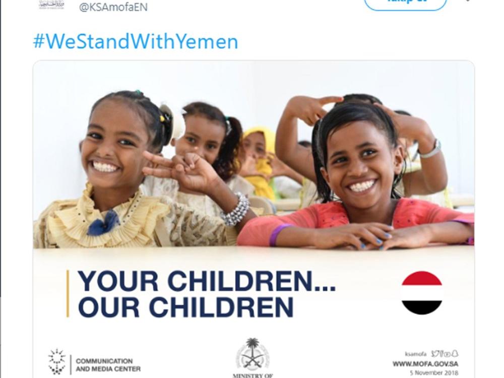 Suudi Arabistan Dışişleri Bakanlığı tarafından paylaşılan mesajlarda, "Yemen halkının yanındayız. Sizin çocuklarınız bizim çocuklarımız' ifadeleri yer aldı.