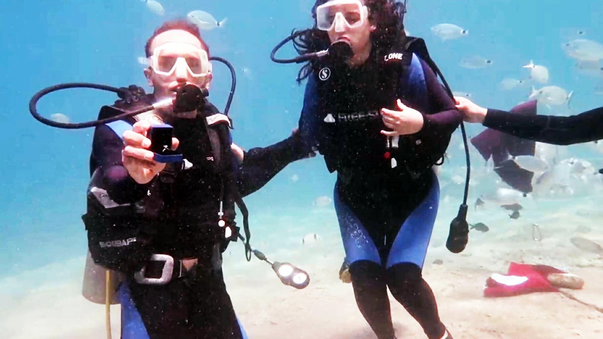 Ufuk Kolsuz, Cengiz'e yüzüğü su altında taktı, ikili daha sonra su yüzeyine çıktı.