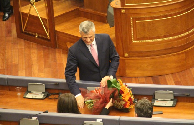 Foto: ReutersCumhurbaşkanı seçilmesi ardından Haşim Taçi, ilk konuşmasını yapmadan önce LDK Partisi milletvekili olan Kosova'nın kurucusu olan ilk Cumhurbaşkakanı İbrahim Rugova'nın kızına bir buket çiçek hediye etti ve kürsüye çıktı.