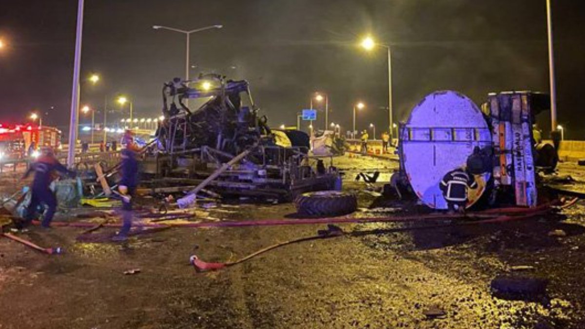 AAAsfaltlama aracı ile minibüsün alev aldığı kazada 3 kişi yaşamını yitirdi, 11 kişi yaralandı.