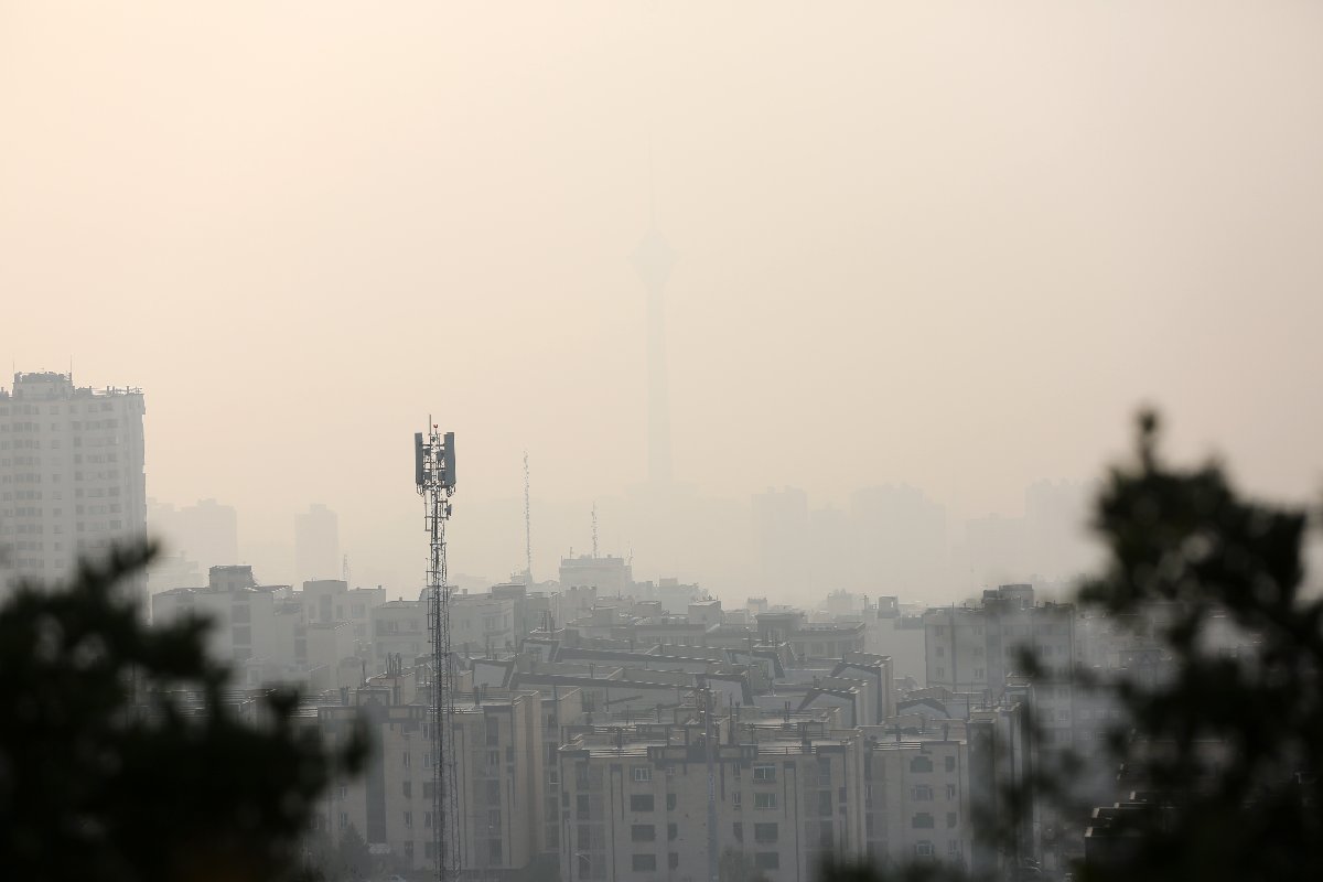 Şehrin sembol yapılarından Milad Kulesi de yoğun hava kirliliği nedeniyle bulanık bir silüete büründü.