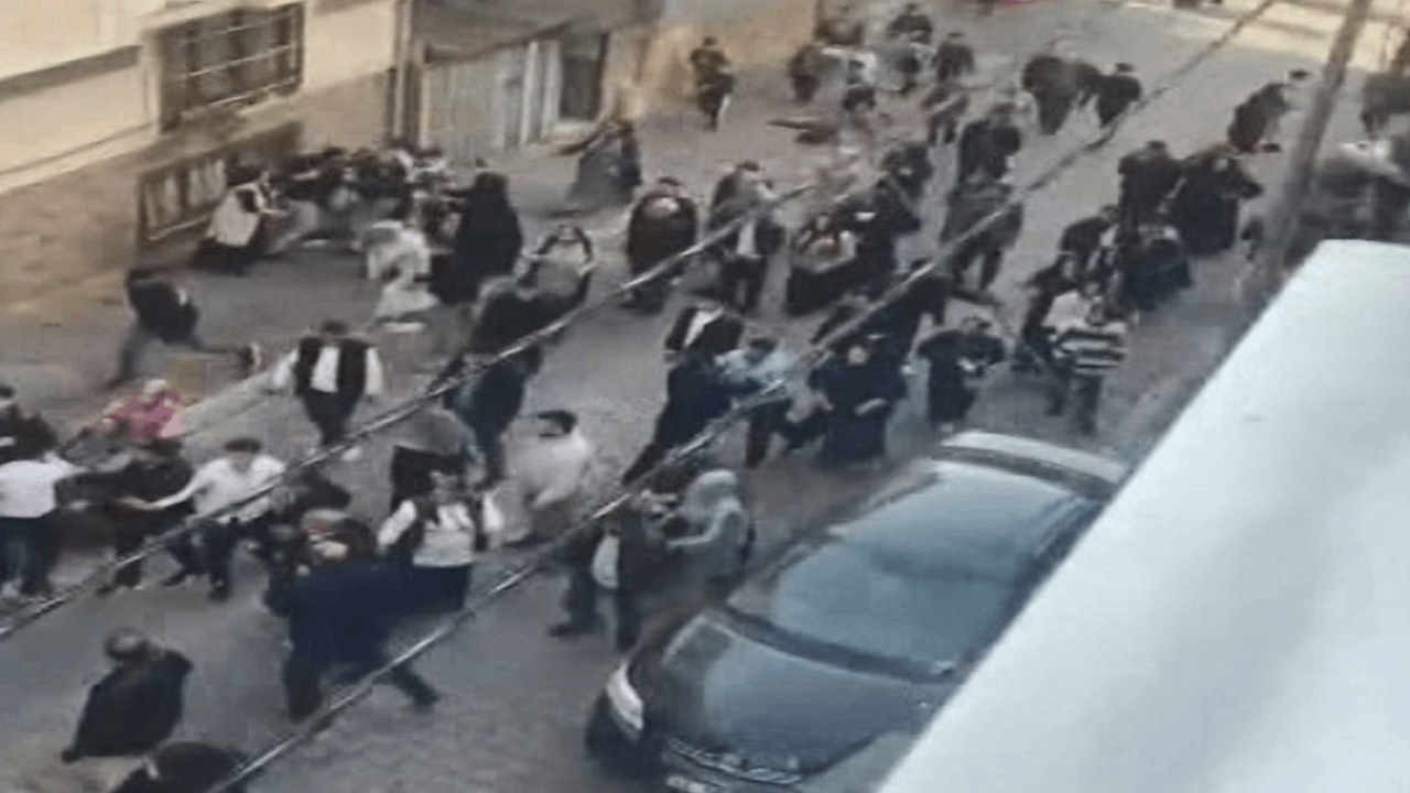 Nikah salonunda başlayarak sokağa kadar taşan kavga çevredekiler tarafından cep telefonu kamerasıyla kaydedildi.