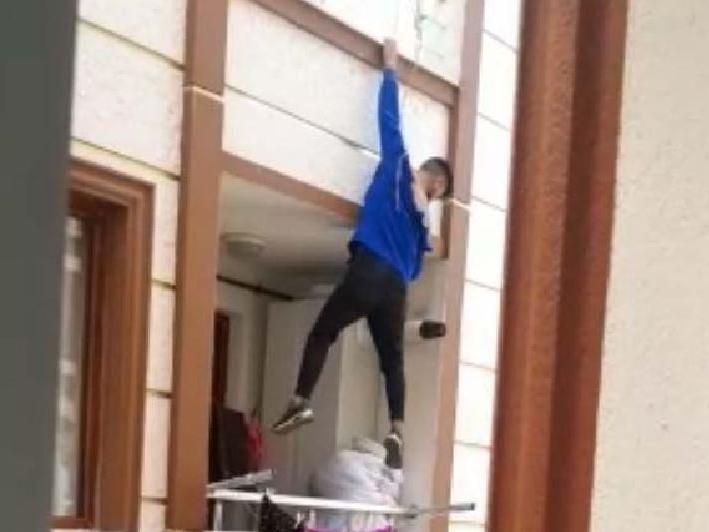 Afgan uyruklu kişinin kaçış görüntüleri bir mahalle sakini tarafından cep telefonu kamerasıyla kaydedildi. Görüntülerde önce balkondan alt kata sarktığı, 3'ncü katın balkonuna atladığı, evin içine girerek kaçtığı görülüyor.