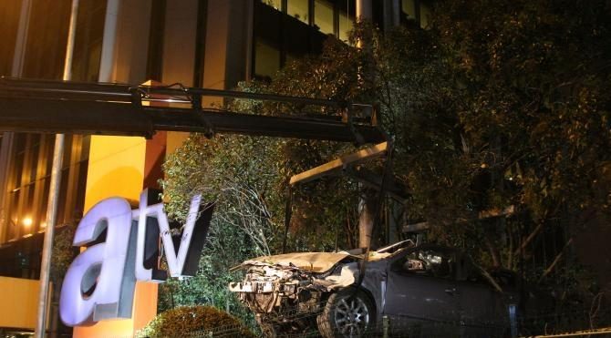 Kaza, Barbaros Bulvarı'nda saat 01.00 sıralarında meydana geldi. Edinilen bilgiye göre, içerisinde 4 kişi bulunan Enes Eraslan (21), yönetimindeki 34 FM 1042 plakalı otomobil, sürücüsünün kontrolünden çıkarak yol kenarındaki kaldırıma çarptı. Taklalar atan otomobil daha sonra ATV televizyon binasının bahçesine uçtu. Kazada 4 kişi yaralanırken, sürücü Eraslan ise otomobil içerisinde sıkıştı. İhbar üzerine olay yerine sağlık, polis ve itfaiye ekipleri sevk edildi. İtfaiye erleri tarafından otomobilde sıkışan sürücü kurtarıldı. Yaralı 4 kişi ambulansla Şişli Hamidiye Etfal Eğitim ve Araştırma Hastanesi'ne kaldırılarak tedavi altına alındı. Kaza yapan otomobil ise, çekici yardımıyla uçtuğu bahçeden çıkartılarak Beşiktaş İlçe Emniyet Müdürlüğü otoparkına götürüldü. Kazayla ilgili soruşturma başlatıldı.