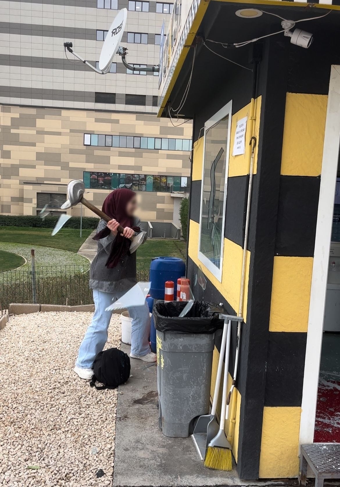 Durak başkanı Mustafa Turan, "Hanımefendinin psikolojik sorunları var sanırım. Birdenbire saldırdı, boyaları döktü. Kadın olduğu için müdahale etmedik ama durağımızda 150 bin liralık zarar var" açıklamasında bulundu.