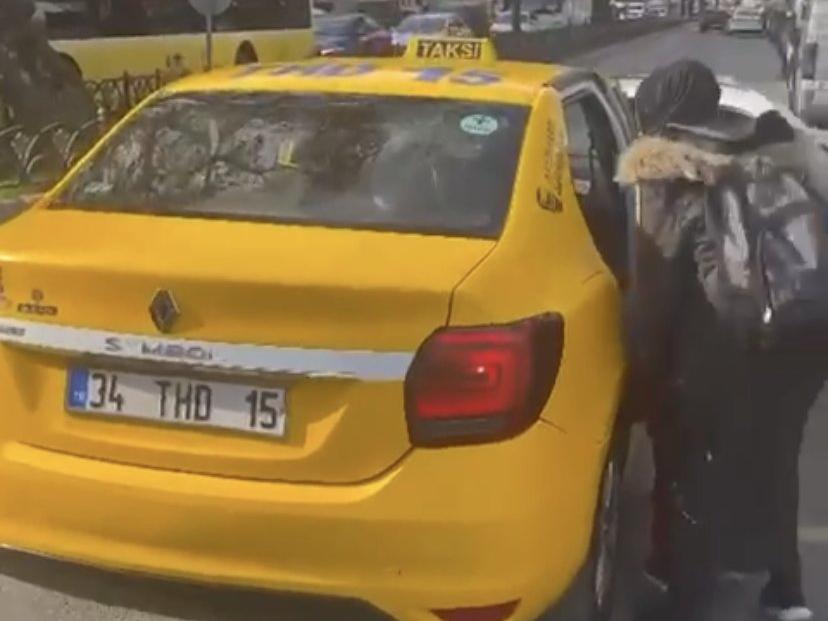 Taksiye alınmayan Furkan Tekfidan o anları cep telefonu kamerasına kaydetti. Görüntülerde, Tekfidan'ın "Araba teslim etmeye gitmiyor muydun? Şeklinde tepki gösterdiği taksi şoförünün, turistler binerken "Teslim etmeye gidiyorum" dediği görülüyor.
