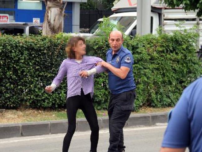 Daha sonra taksiye saldıran S.K., aracın aynalarını kırdı. Taksicilerin ihbarı üzerine gelen polis ekipleri, S.K.´yi gözaltına aldı.