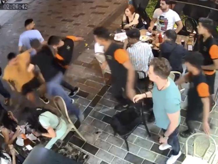 Taksim Talimhane'de yabancı uyruklu iki şahıs kadınlara laf attıkları ve taşkınlık yaptıkları gerekçesiyle restoran çalışanları tarafından dövüldü.