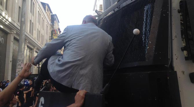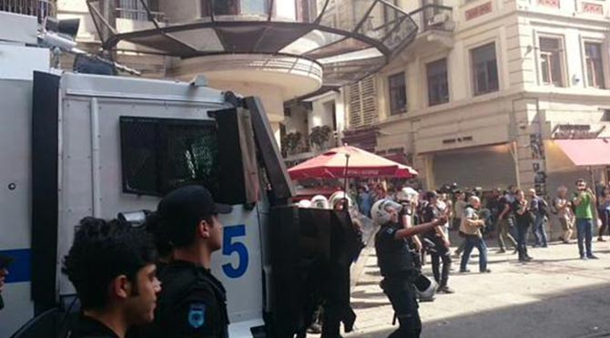 Çevik kuvvet ve sivil polisler, grupları Taksim Meydanı ve Gezi Parkı'ndan uzaklaştırdı. Bir grup da İstiklal Caddesi'nde toplanarak Taksim Meydanı'na doğru yürüyüşe geçti. Önce 'dağılın' uyarısında bulunan polis, daha sonra gruba tazyikli su sıkarak müdahale etti.