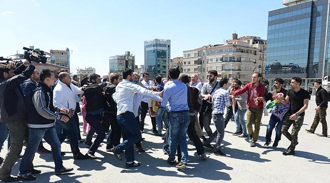 Taksim'de, İran'ın Mahabad kentinde tecavüzden kurtulmak isterken, çalıştığı otelin dördüncü katından atlayarak intihar ettiği belirtilen Farinaz Hosreveni icin, eylem yapmak isteyen bir gruba polis müdahale etti. Türkiye'ye gelen Suriyeli Kürtlerden oluşan gruptan 5 kişi gözaltına alındı.Taksim Meydanı'nda saat 14.30 sıralarında toplanan yaklaşık 100 kişi, İran'da cinsel saldırıdan kurtulmak için intihar ettiği iddia edilen Ferinaz Hosreveni'nin fotoğraflarını açtı.. Kuzey Irak Bölgesel Kürt yönetimi bayrağı taşıyan grup slogan atmaya başladı. Bu sırada ilk müdahale meydanda bekleyen sivil polislerden geldi. Polisler grubu ellerindeki bayrakları almaya çalıştı. Bir süre sonra gelen takviye ekiplerin yardımıyla grup meydandan uzaklaştırıldı. Gruptan bazılarının direnmesi üzerine polis 5 kişiyi gözaltına aldı. Bu sırada küçük çaplı arbede yaşandı. Aralarından kadın ve çocukların da bulunduğu grup, çevik kuvvet ekiplerinin gelmesiyle, Tarlabaşı Caddesi yönünde dağıldı. Gözaltına alınan 5 kişi, polis merkezine götürüldü.