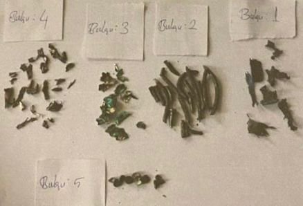Ana maddesi TNT olan bombanın güçlenmesi için içine çivi, olta ucuna takılan kurşunlar ve metal parçalar konulduğunu belirleyen ekipler, olay yerinden topladıkları parçaları incelemeye başladı. O parçalara ait fotoğraflarda bombanın içeriğindeki TNT ve Nitro Selüloz parçaları da dikkat çekti.