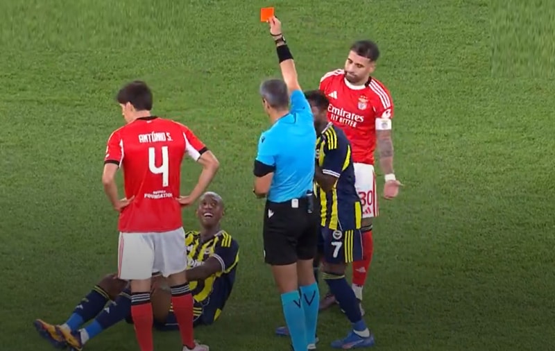 Mücadele 1-0 Benfica'nın üstünlüğü ile sürerken Fenerbahçe'de Anderson Talisca, 79 ve 82. dakikada iki sarı kart gördü ve kırmızı kartla oyun dışında kaldı. İkinci sarı kartında rakibine dirsek atan Talisca hakemin ikinci sarı kartıyla direkt soyunma odasına gitti.