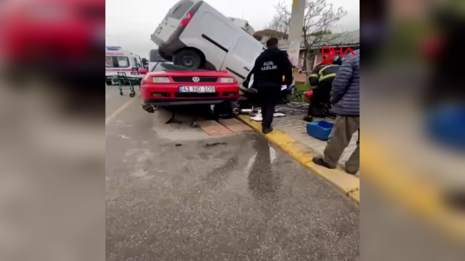 Kocaeli’nin Kartepe ilçesinde sabah saatlerinde M.K. yönetimindeki hafif ticari araç, sürücüsünün direksiyon hakimiyetini kaybetmesi sonucu, oto tamirhanesi önüne park edilen otomobile çarptı. Çarpmanın etkisiyle savrulan araç, ardından yol kenarındaki elektrik direğine çarparak durabildi.
