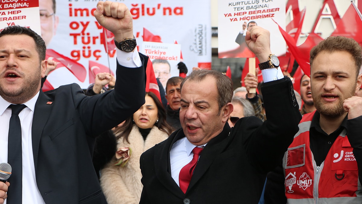 Partililere seslenen Bolu Belediye Başkanı Tanju Özcan, sine-i millet çağrısı yaparak, “Sabah bir çağrı yaptım. Biz Cumhuriyet Halk Partililer olarak İngiliz’inden, Fransız’ından, İtalyan’ından, Yunan’ından korkmamışız da sizden mi korkacağız. Hodri meydan. Buradan bütün muhalefete sesleniyorum ne yapmamız gerekiyorsa yapalım. Sine-i millete mi dönmemiz gerekiyor, 160 milletvekili ile 415 belediye başkanı ile basalım istifayı inelim sokağa, hazır mısınız? Bu yaptıklarınız bizi sindirecek zannediyorsunuz ama şunu görmüyorsunuz. Kendi arasında çelişki olan muhalefeti tek yumruk haline getiriyorsunuz. Bu yaptıklarınızın hesabını önce sandıkta vereceksiniz, sonra da yargı önünde vereceksiniz. Ne olur yılgınlığa kapılmayalım. Ne olur dik duralım. Ne olur bunlara inat asla korkmayalım. İnceldiği yerden de kopsun. Hazırız biz buna” diye konuştu.