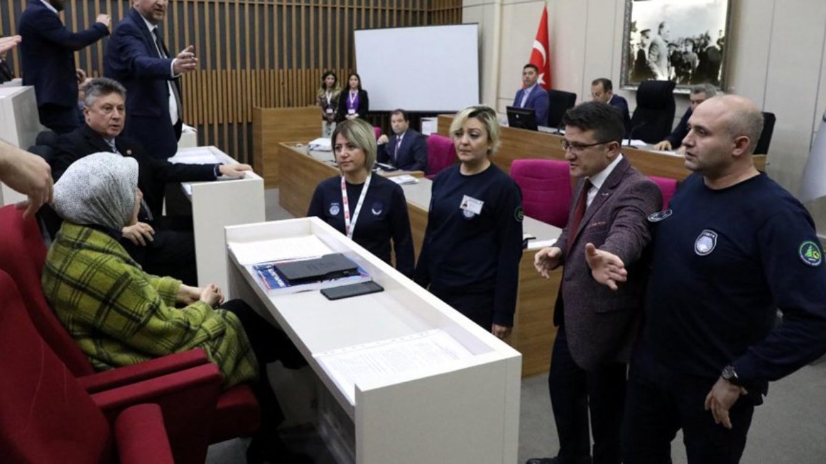 Bunun üzerine Tanju Özcan, zabıta ekiplerine Hacer Çınar'ın salondan çıkarılması talimatını verdi. Zabıta ekiplerinin gelmesi üzerine AKP'li diğer meclis üyeleri, Hatice Çınar'ın çevresinde toplandı. AKP'li meclis üyeleri ile Başkan Özcan arasında sert tartışmalar yaşandı.