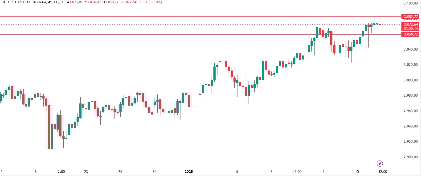 Dünü 3 bin 42 lira ile 3 bin 82 lira aralığında geçiren gram altın, günü 3 bin 72 liradan tamamladı. Yeni günde ise sabah seansında aynı saat diliminde 3 bin 72 lirada bulunuyor.