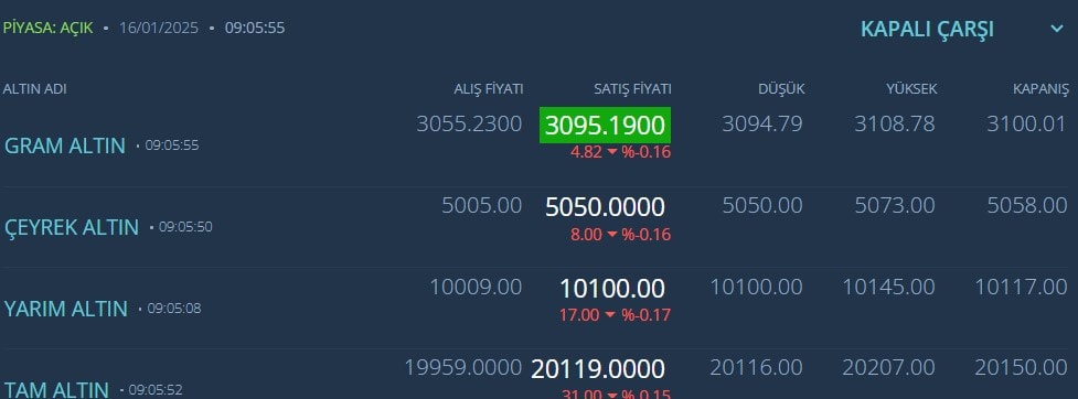 KAPALIÇARŞI ALTIN FİYATLARI