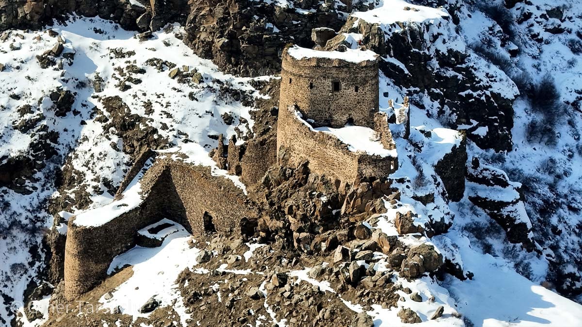 Urartular döneminde yapıldığı tahmin edilen kale, kanyonun ortasındaki sarp kayalıkların üzerindeki konumuyla dikkati çekiyor.