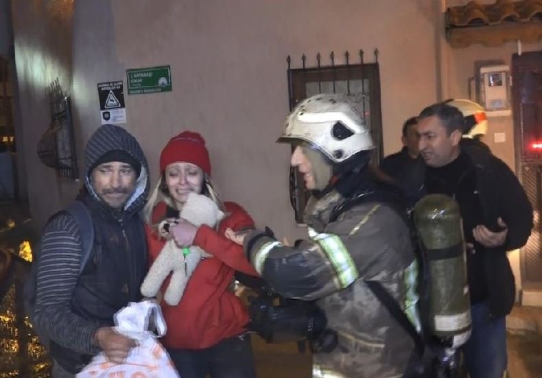 Dumanların arasında kalan kadın, merdivenli itfaiye aracı ile 2'nci katın penceresinden girilip, kurtarıldı. Evsiz olduğu öğrenilen Pınar A. isimli kadının 4 katlı tarihi binanın 2'nci katında yaşadığı öğrenildi.