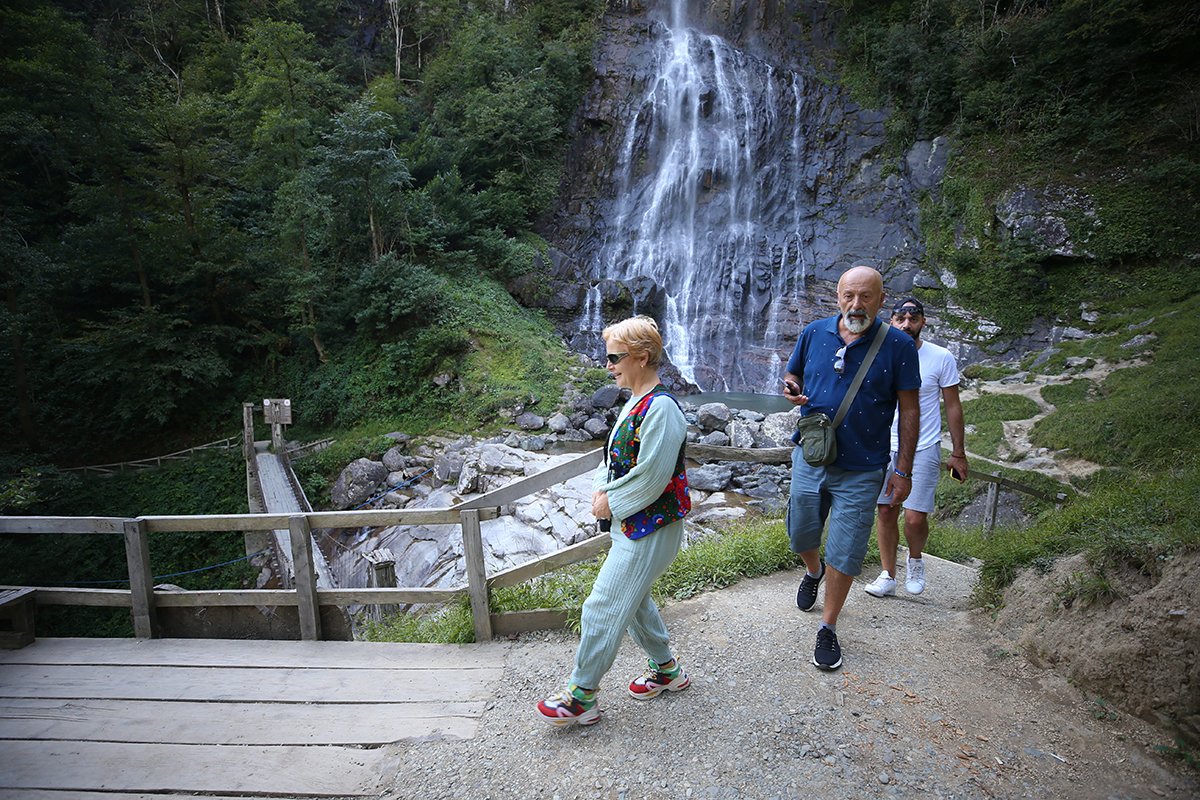 Mustafa Çolakoğlu'nun eşi Birsen de yıllarca merak ettiği Mençuna Şelalesi'ni görmenin mutluluğunu yaşadığını anlattı.