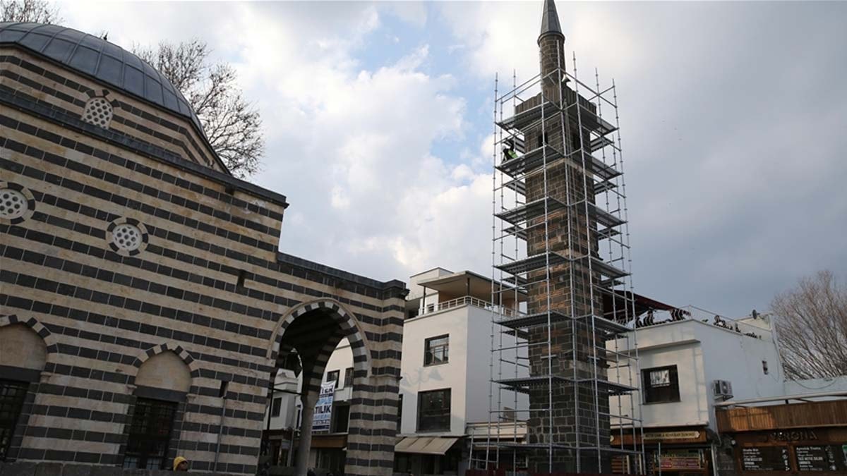 Akkoyunlular döneminde yaptırılan Şeyh Mutahhar Camisi'ne ait yekpare dört sütun üzerinde inşa edilen Dört Ayaklı Minare'de yürütülen restorasyonun gelecek ay tamamlanması planlanıyor.