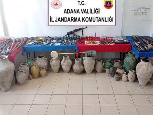 Adana'da jandarma ekiplerinin tarihi eser kaçakçılarına yönelik düzenlediği operasyonda çok sayıda el bombası, roketatar mühimmatı, dinamit, fünye, tüfek ve tabanca ele geçirildi.