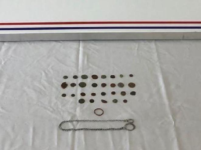 Ekipler, dün elindeki tarihi eserleri satmaya çalışan G.D.'yi suçüstü yakaladı. 29 sikke, 1 gümüş zincir ve 1 yüzük ele geçiren ekipler, G.D.'yi gözaltına aldı. İlçe Jandarma Komutanlığı'ndaki işlemleri sonrası G.D. serbest bırakıldı. Ele geçirilen tarih eserler ise Bursa Müze Müdürlüğü'ne teslim edilecek. (DHA)