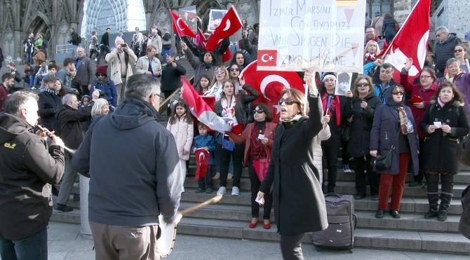 Almanya'nın Köln kentinde, tarihi katedral önünde ellerinde Türk bayraklarıyla toplanan bir grup, davul zurna eşliğinde İzmir Marşı'nı söyledi. İzmir Marşı'nı 10'ar dakika arayla üç kez söyleyen grup etkinliğin sonunda, “Mustafa Kemal'in askerleriyiz” sloganları attıktan sonra olaysız dağıldı. Marşın okunmasını merakla izleyen ve neler olduğunu soran Almanlara, organizasyonu yapan Diş Hekimi Ebru Tekiner Uzun, Almanca açıklamalarda bulundu.