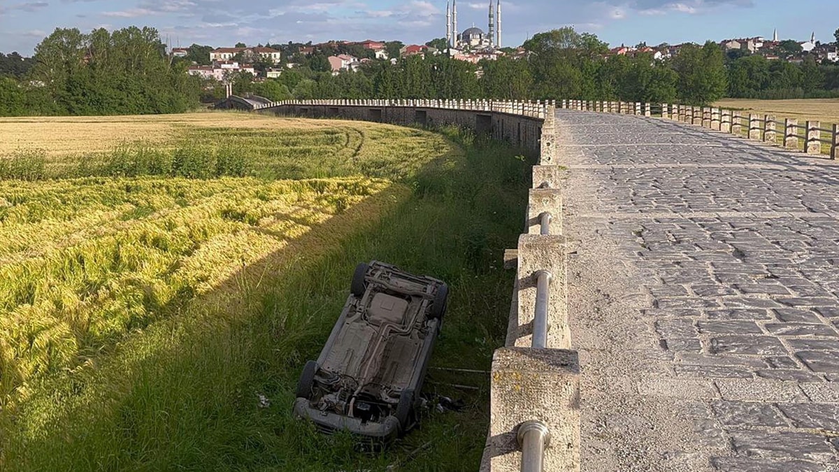 Edirne Yenimaret Mahallesi'ndeki tarihi Saraçhane Köprüsü üzerinde akşam saatlerinde, Cem A. yönetimindeki 22 ACV 286 plakalı hafif ticari araç, seyir halindeyken direksiyon hakimiyetini kaybetti.