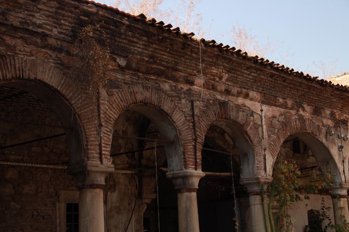 "İki katında da avluya açılan odalar mevcut. Üst katı revaklı, kemerli ve tonozlu. Odalarda haçvari tonozlar var. Revaklı bölümünde ise normal tonoz mevcut. Revaklı tonozlar birbirlerine kemerlerle bağlanmış durumda.