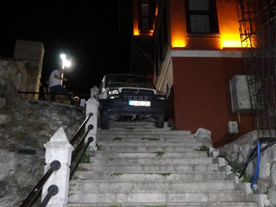 Herhangi bir yara almayan sürücü çevredekilerinin yardımıyla araçtan çıkarıldı. Çevrede bulunan otel çalışanları durumu hemen polis, itfaiye ve sağlık ekiplerine bildirdi. O sırada sıkışan arabadan çıkan sürücü olay yerinden hızlıca uzaklaştı. Olay yerine kısa sürede gelen ekipler sürücüyü olay yerinde bulamadı. İtfaiye ekiplerince sıkıştığı yerden kurtarılan araç çekiciye yüklenerek otoparka götürüldü. (İHA)