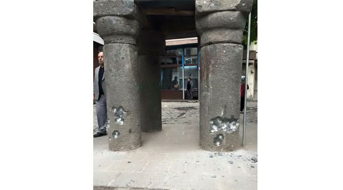Diyarbakır mimarisinin en önemli eserlerinden biri olan 16'ncı yüzyıl eseri "Dört Ayaklı Minare" yaşanan silahlı çatışmalardan etkilenerek tahribata uğradı. Tarihi yapının iki ayağına onlarca kurşun isabet etmesi sonucu kırılan parçaları yere düştü. Çatışmalar sonucu, 4 Temmuz tarihinde UNESCO Dünya Kültür Mirası Listesi'ne giren tarihi surlar ve bazı yapılar da zarar gördü. 7 Haziran’dan sonra sokağa çıkma yasağının ilan edilmesinin ardından ilçede yaşanan çatışmalarda Kurşunlu Camii, Surp Giragos Kilisesi, Ermeni Katolik Kilisesi büyük hasara uğradı.