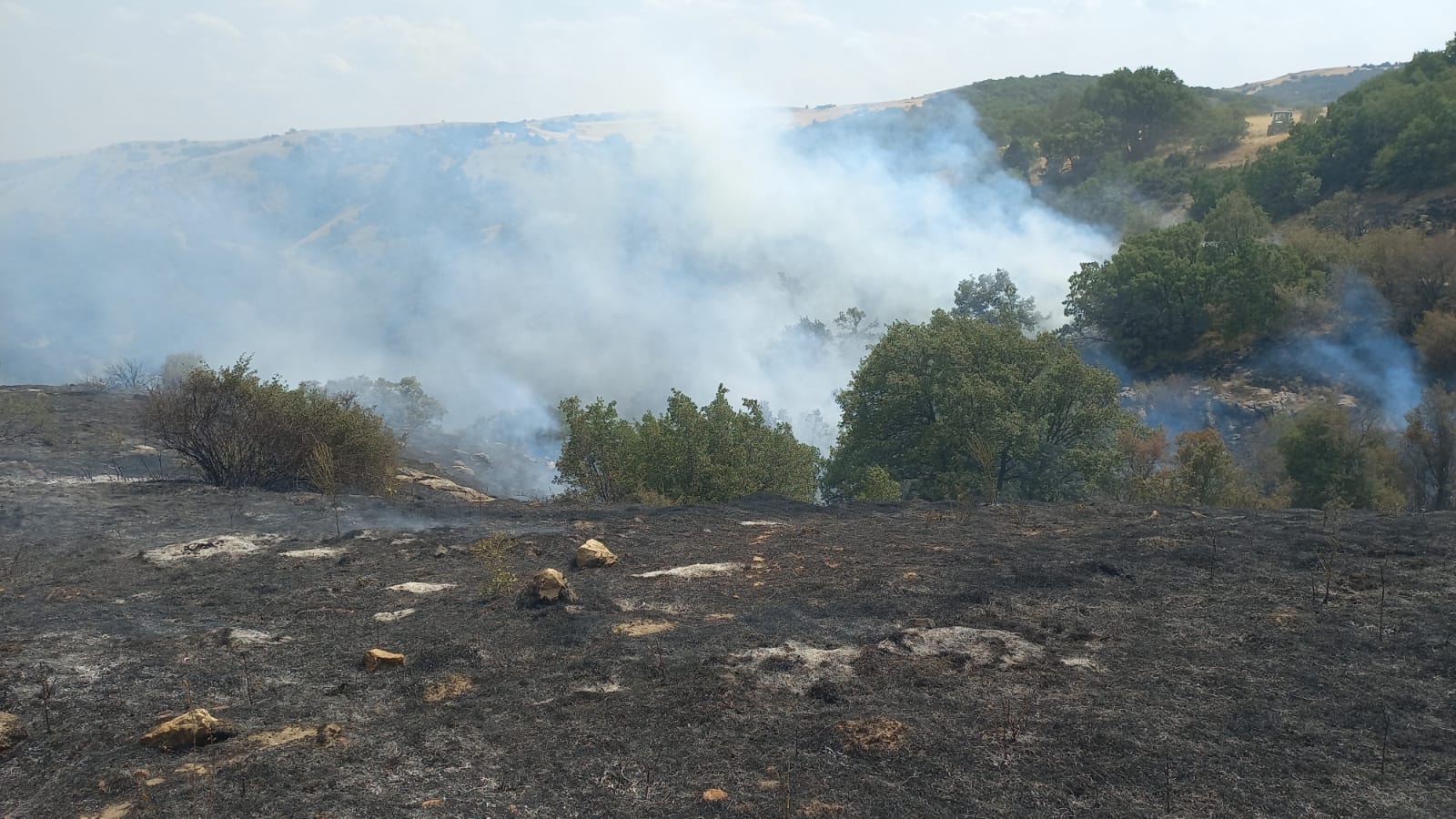 İlçeye bağlı kırsal Uludere Mahallesi yakınlarındaki tarım arazisinde, henüz bilinmeyen nedenle yangın çıktı.
