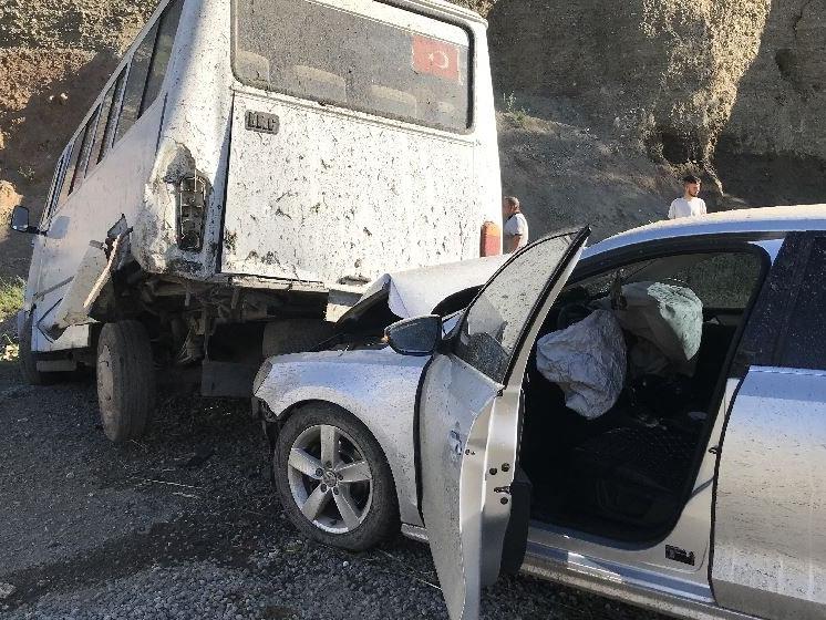 Elazığ’da otomobil, tarım işçilerini taşıyan minibüse arkadan çarptı. İki araç birlikte şarampole sürüklenirken, kazada 1'i ağır 17 kişi yaralandı.