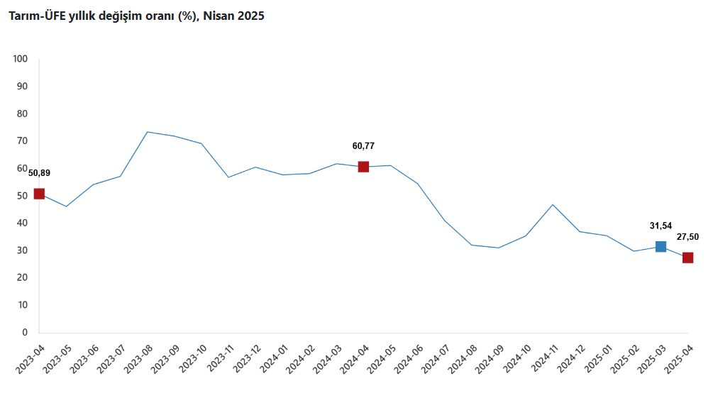 Türkiye İstatistik Kurumu (TÜİK), nisan ayına ilişkin Tarım ÜFE verilerini açıkladı.