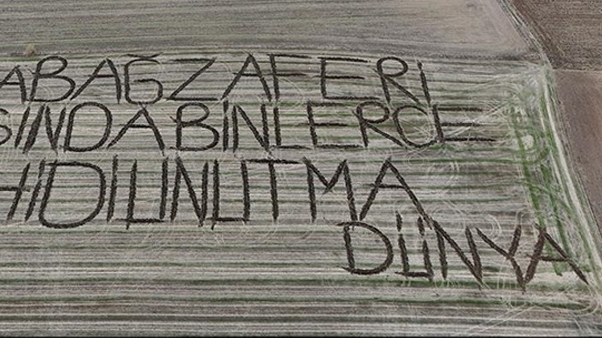 Traktörüne Türk ve Azerbaycan bayrakları asan çiftçi Burak Tunçkol, muhabirlere toplumda algı oluşturmak için böyle bir çalışma yaptığını söyledi. Kırklarelili toprak emekçisi tarlasına "Karabağ Zaferi 5 yaşında, binlerce şehidini unutma dünya" yazdı."