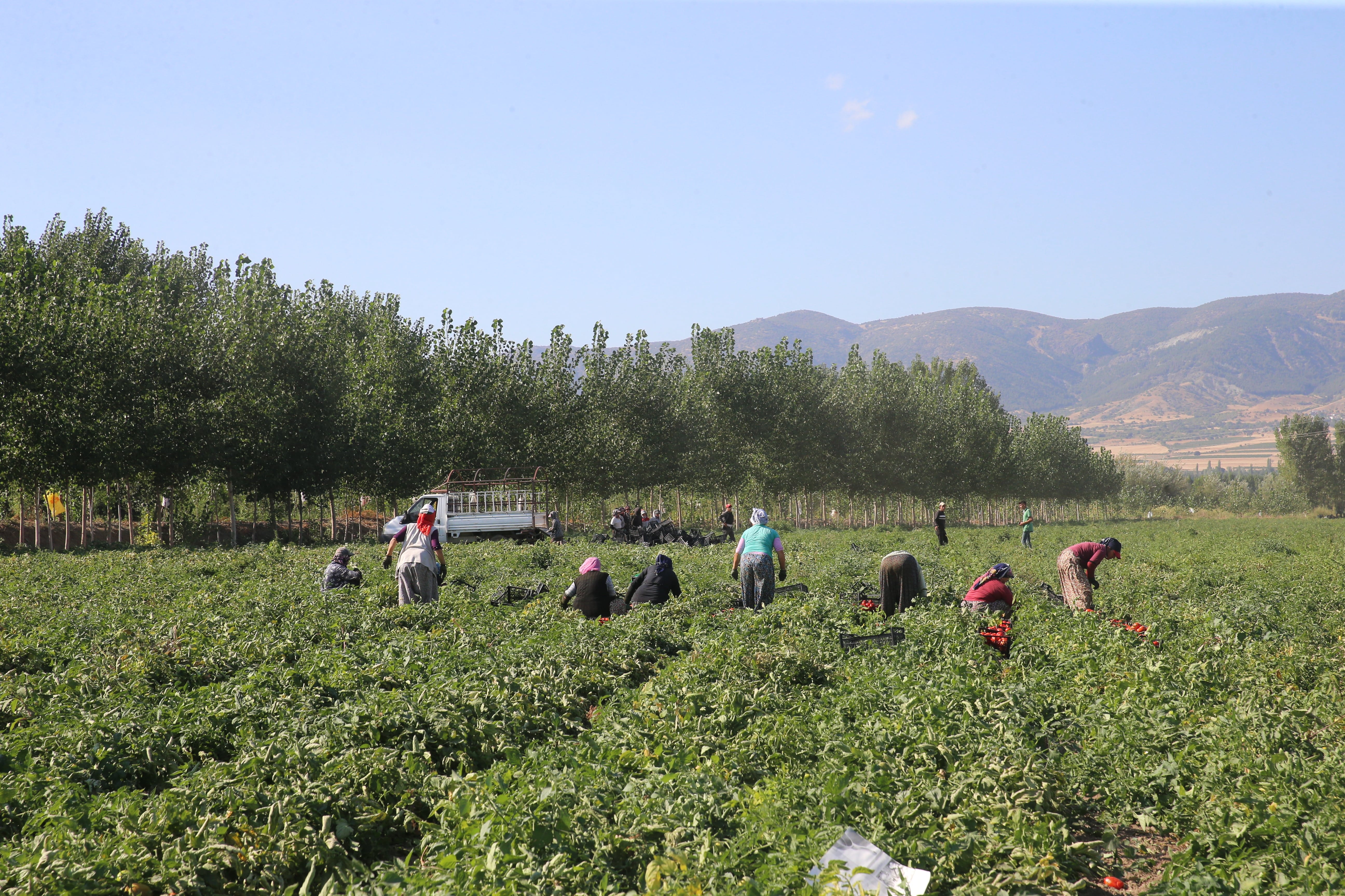 Tokat'ta ağustos ayının sonunda başlayan domates hasadı devam ediyor.