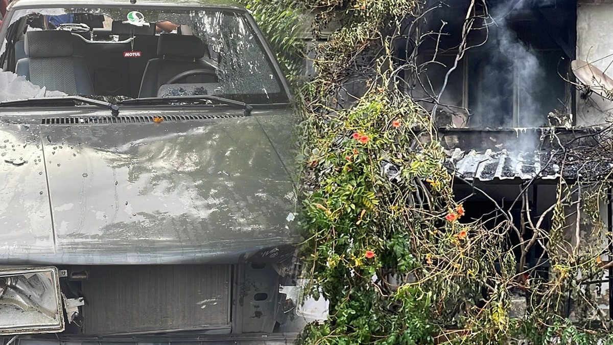 OTOMOBİLİ TAŞ VE SOPAYLA PARÇALADI, EŞİ DE EVİ YAKARAK KARŞILIK VERDİ