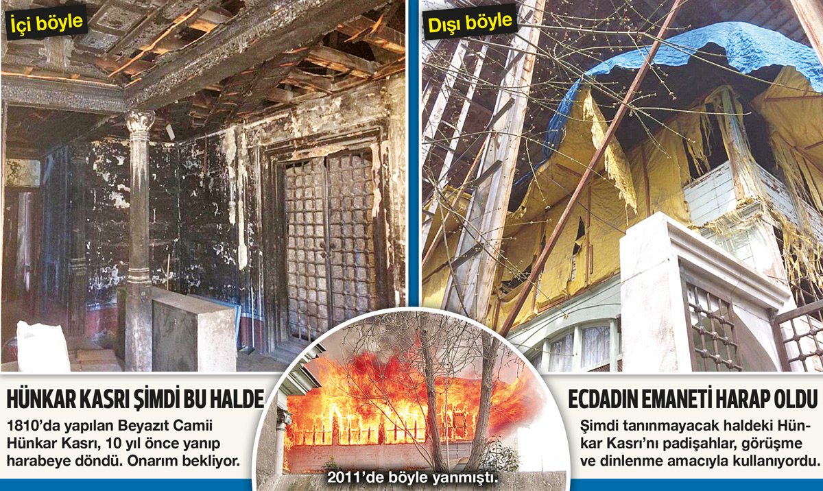 Sultan II. Bayezid tarafından yaptırılan Beyazıt Camisi’nde, padişah ziyaret ettiğinde dinlenme ve görüşmeler için özel tasarlanan hünkâr kasrı bulunuyordu. 1810’de yapılan bu kasr, 21 Şubat 2011’de büyük çaplı bir yangında tahrip oldu ve o günden bu yana yok olmaya terk edildi. Vakıflar Genel Müdürlüğünce Beyazıt Camii restorasyona alınsa da 2013-2020 yılları arasında kasra bir müdahale yapılmadı. Artık Gezi Parkı’nın da sahibi olan Beyazid Han-ı Sani Vakfı’na tescilli olan bu kasrın akarlarından elde edilen gelirle onarılması ve yaşatılması gerekiyordu.