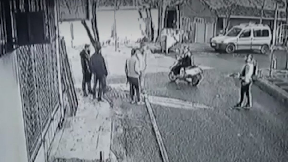 Motosikletten inen şüphelinin üzerlerine doğru ateş açtığı kişiler sokakta bulunan bir markete sığındı.