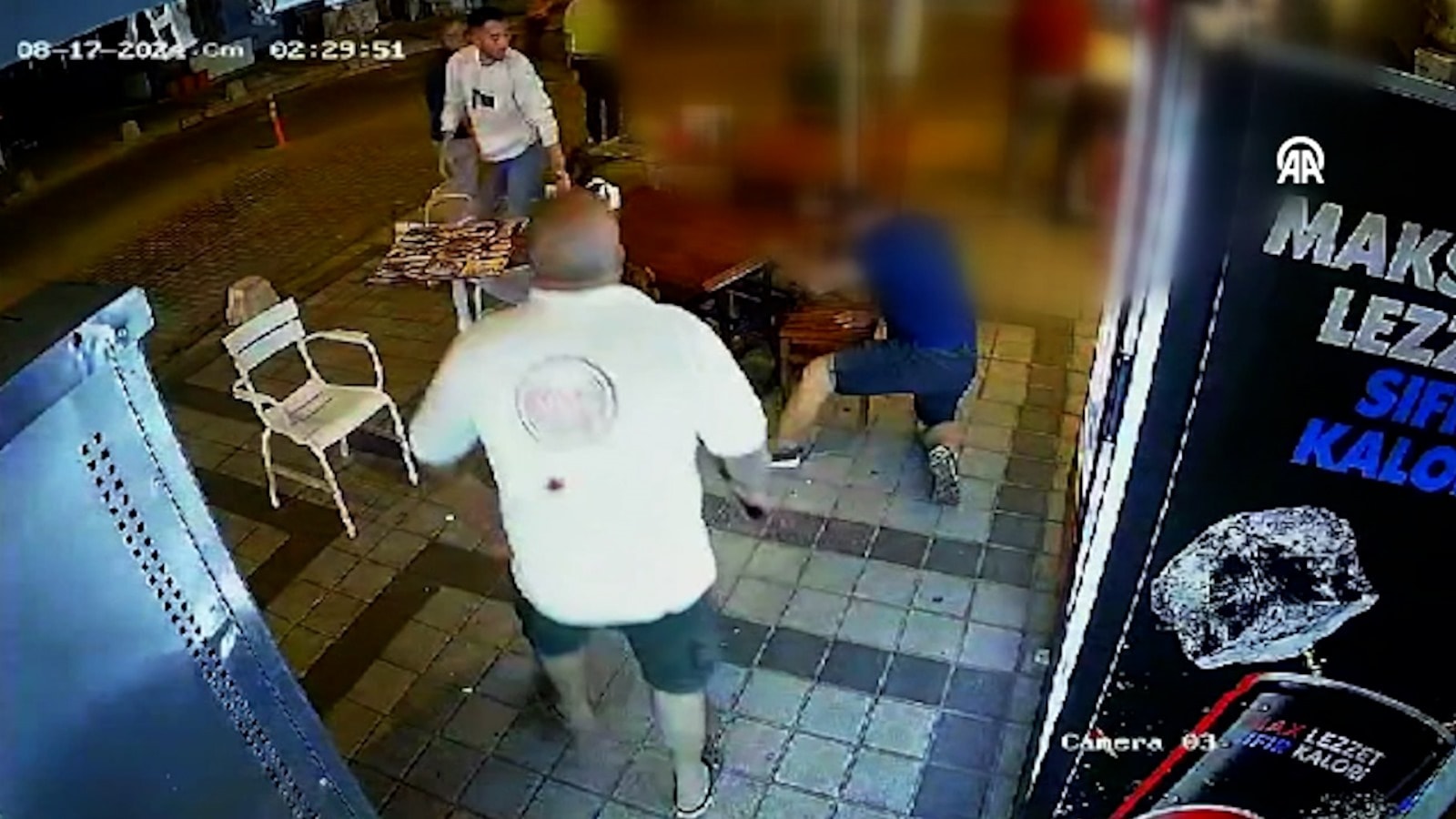 Kavga anı ve iş yerinde bulunan müşterilerin kaçması bir iş yerinin güvenlik kamerası görüntülerine yansıdı.