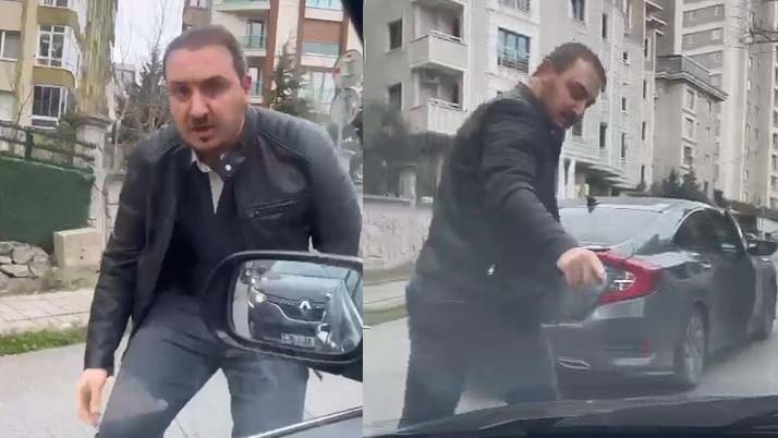Buna sinirlenen diğer sürücü, aracından cep telefonunu alarak geri geldi ve diğer aracın fotoğrafını çekerek "Ben seni akşam nasıl buluyorum, aldım plakanı" dedi. Bu sırada sinirlenen sürücünün yanındaki diğer kişi de araçtan inerek diğer aracın kapısını açmaya çalıştı. Daha sonra sürücü ve yanındaki kişi kendi araçlarına geri döndü ve olay yerinden uzaklaştı. Yaşananları aracından inmeyen sürücü cep telefonuyla kaydetti.