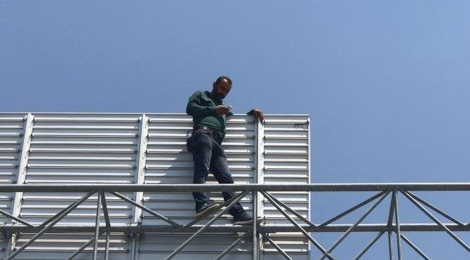 İZMİT'te taşeron firmada çalışan 2 işçi, ücretlerinin yatırılmamasını protesto etmek için yol üzerinde trafik tabelasına çıktı. Alacaklarının yatırılmasını isteyen işçiler cep telefonundan hesaplarına 15 bin lira yatırıldığını görünce indi.