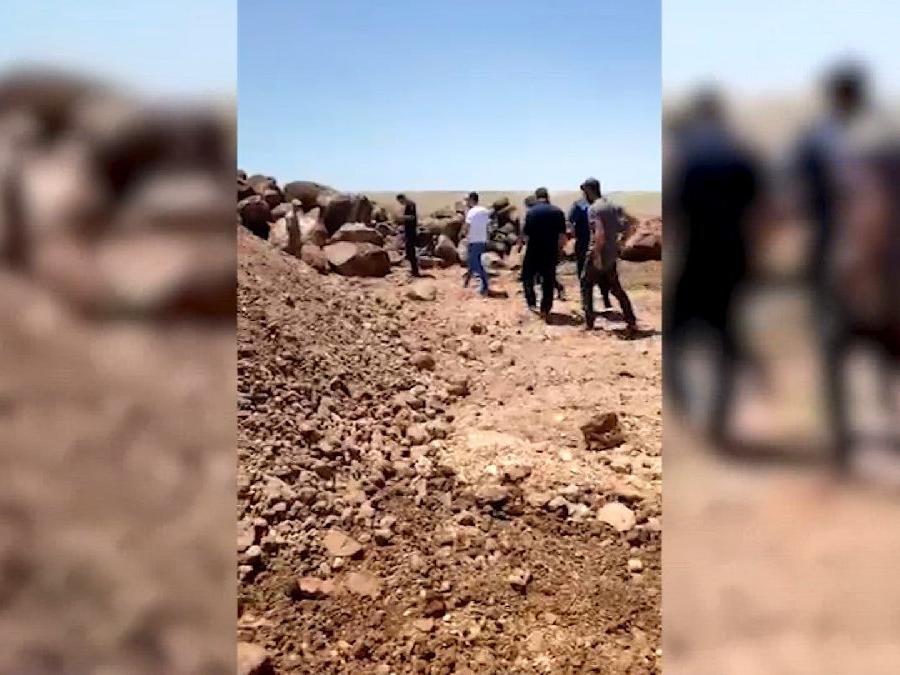 Şanlıurfa'da Hilvan ilçesinde iş makineleriyle tarlada taş temizliği yapılırken, naylona sarılı insana ait olduğu değerlendirilen kafatası ve kemikler bulundu.